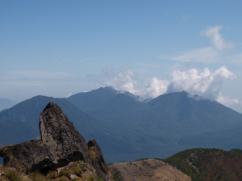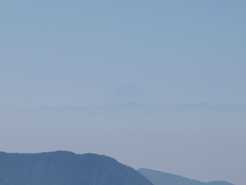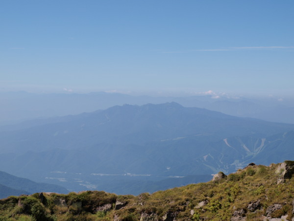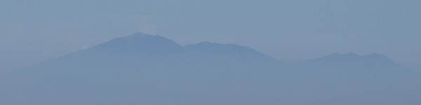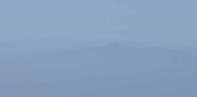 尖がりは四阿山。奥の薄い山並みは北アルプスですよ。