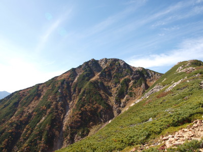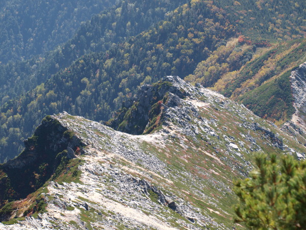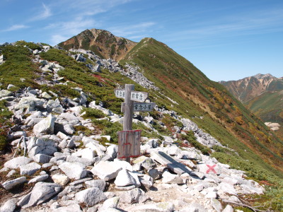 この時点で蝶ヶ岳経由の下山はあきらめモードです。