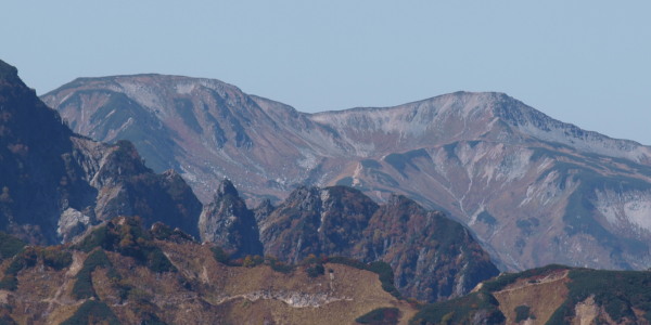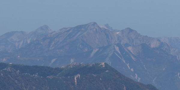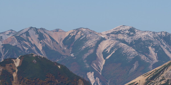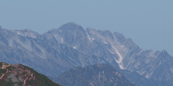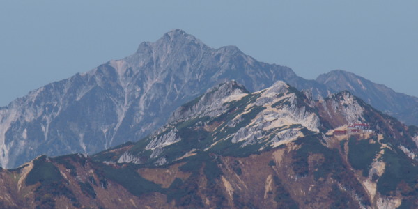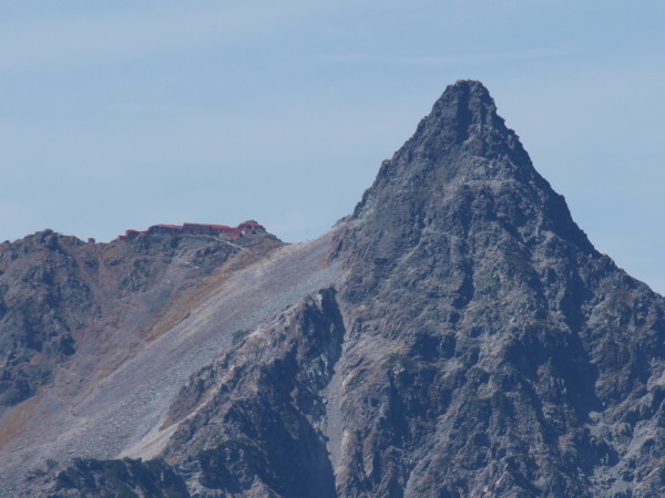 針ノ木岳と手前が燕岳。燕山荘も見えます。