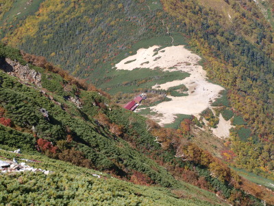 涸沢の紅葉・・・涸沢小屋が写ってました。