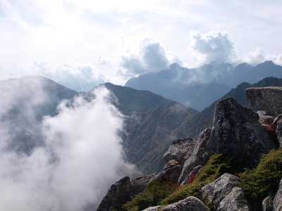 13:35 穂高岳に雲が、そして谷筋からも雲が湧いてきました。