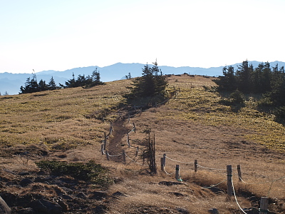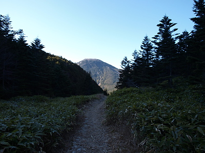 8:07 双子山山頂部は気持ちのいい笹原を歩きます。
