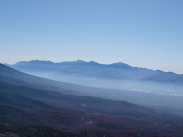 9:55 北横岳と蓼科山の間に乗鞍岳が見えます。(たぶん・・・)