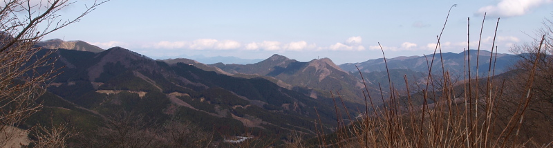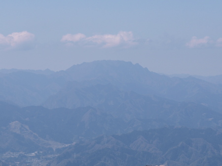 今日、歩いて来た山が見渡せます。真ん中の山が伊豆ヶ岳。