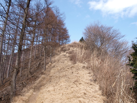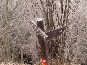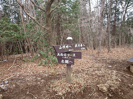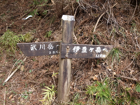 伊豆ヶ岳方面に進みます。(写真左隅の棒が標識。)