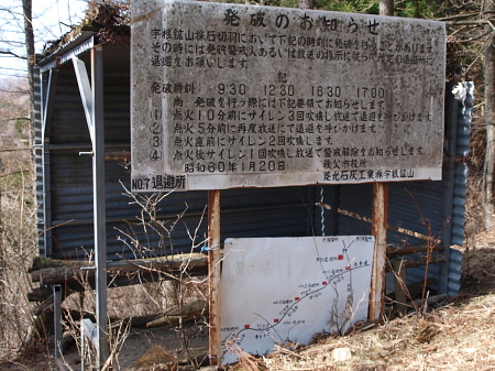 14:27 待避所。石灰石採掘の発破作業時に待避します。