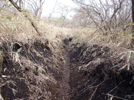 ドロドロ覚悟の道です。特に雨上がりの時や雪や霜柱が融けた時。