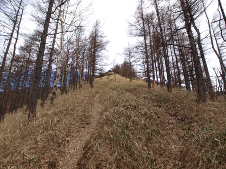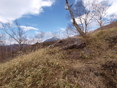 下山時は稚児ヶ墓手前で薄い踏み跡を辿ります。