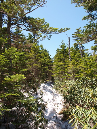 11:13 ご覧の通り残雪を踏みしめての登りです。
