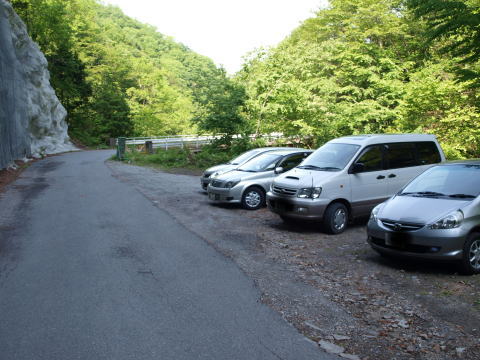 この先、八丁トンネルを抜けた所に駐車場あり。(トイレもあり)