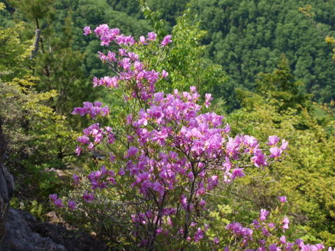 9:45 アカヤシオかな?緑の山にピンクがきれいでした。