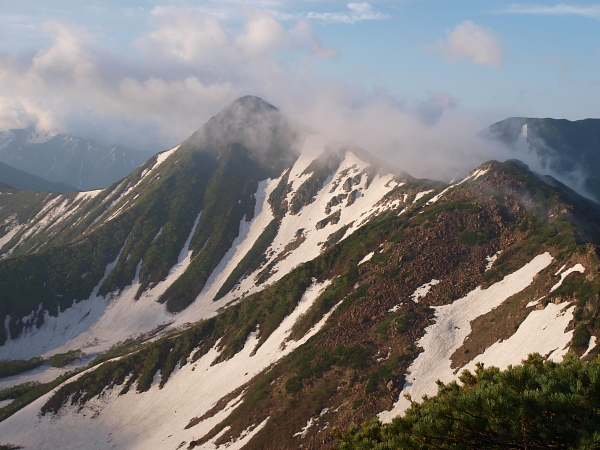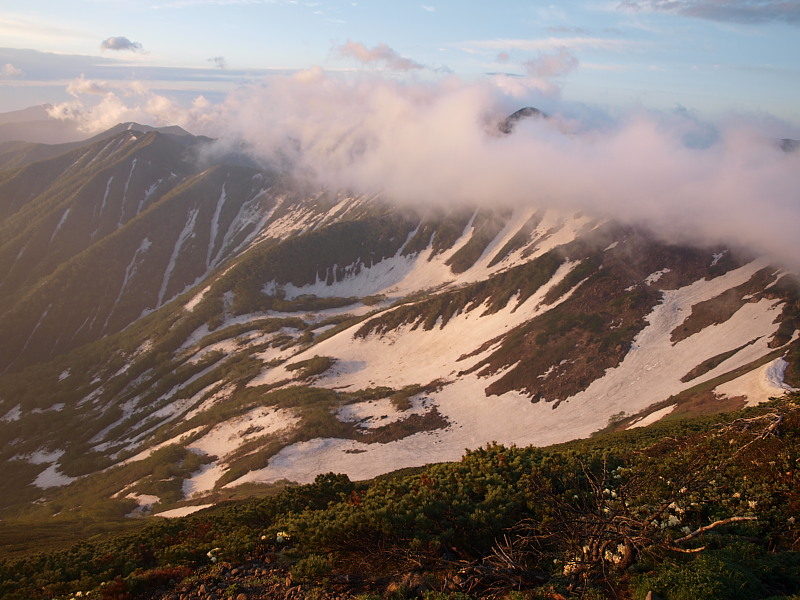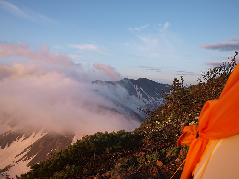 4:07 テントから幌尻岳。雲の流れが速かったです。