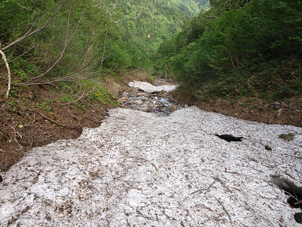 途中、雪渓で道をロストするもすぐに復帰。同行者が居ると心強いですね。