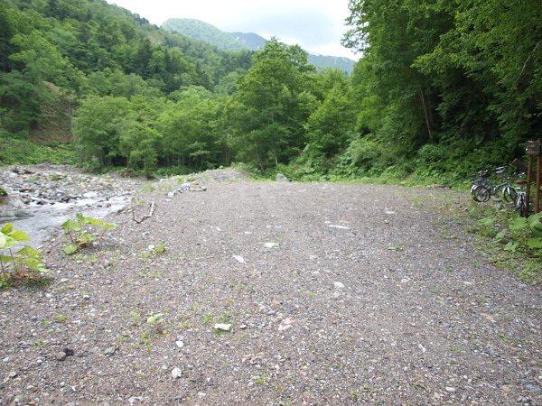 9:56 取水口の広場。この日は沢山の自転車がデポしてありました。