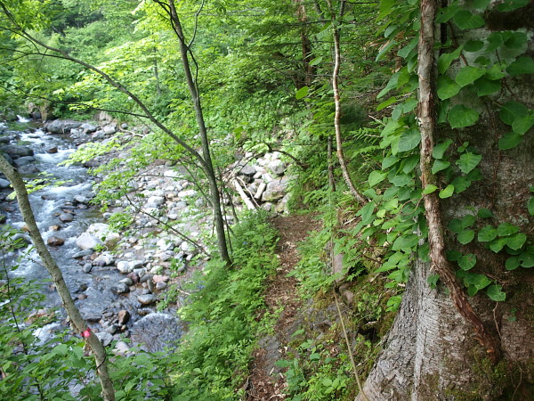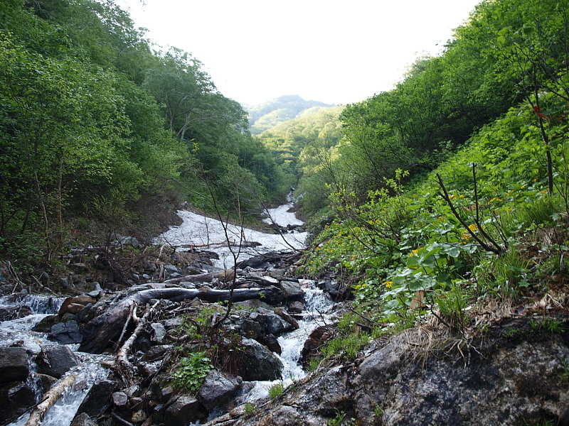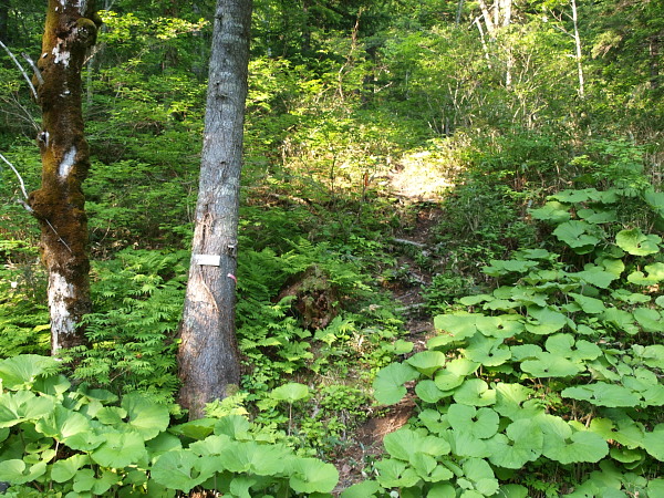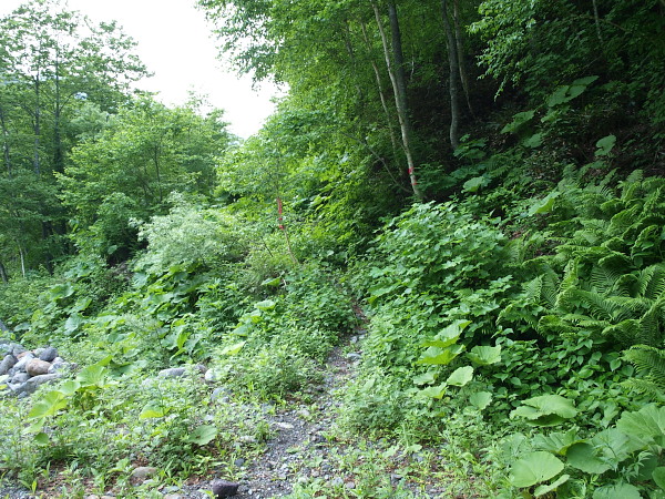 5:58 ここまでほぼ沢沿いを蕗の中や河原を目印を頼りに歩いています。