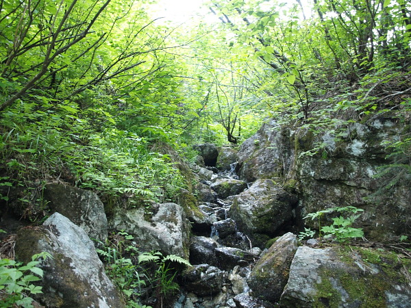7:18 本流から外れて流れの少ない沢の登り。