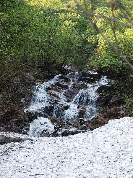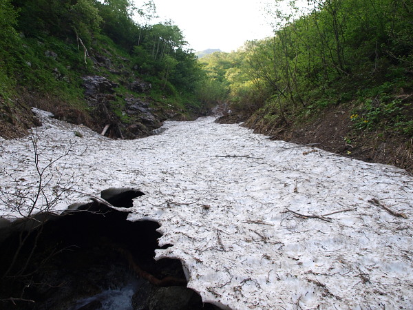 7:28 雪渓の下は空洞・・・水が激しく流れています。