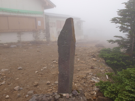この日、下界は真夏の暑さなのに山頂はガスガスで風が強く寒かったです。