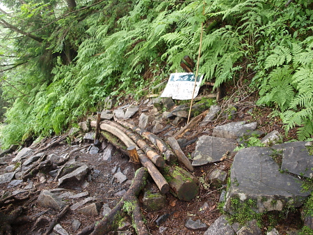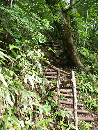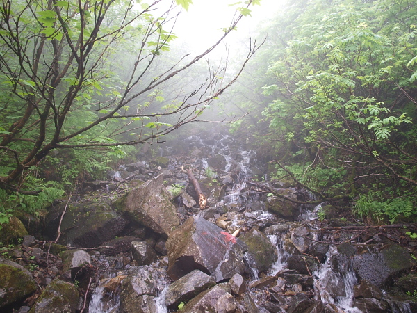 ここまで沢沿いを歩きます。増水時は迂回する道(約30分)があります。