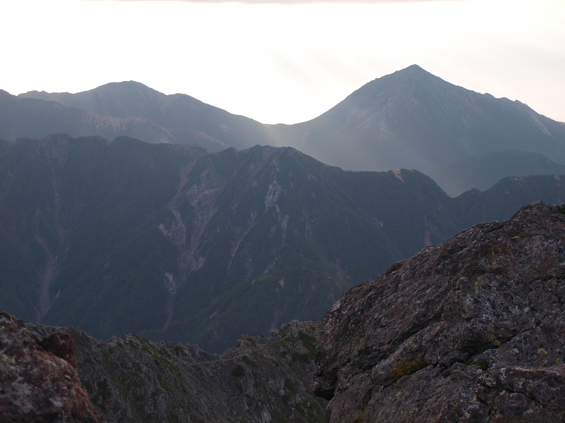三脚が無いので岩の上からです。槍の穂先が切れてしまいました。