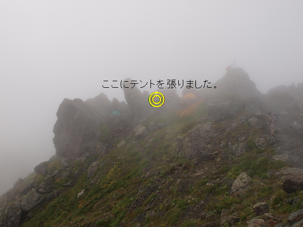 6:45 殺生ヒュッテ分岐。テントは1張りありました。