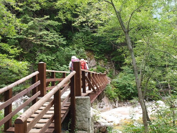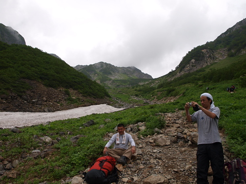 槍沢のコースはメジャーなだけあって続々と人が登ってきます。