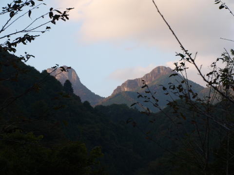 16:37 駐車場に着いたら二子山が夕日に照らされていました。