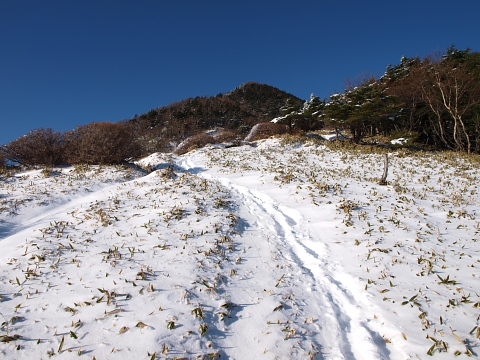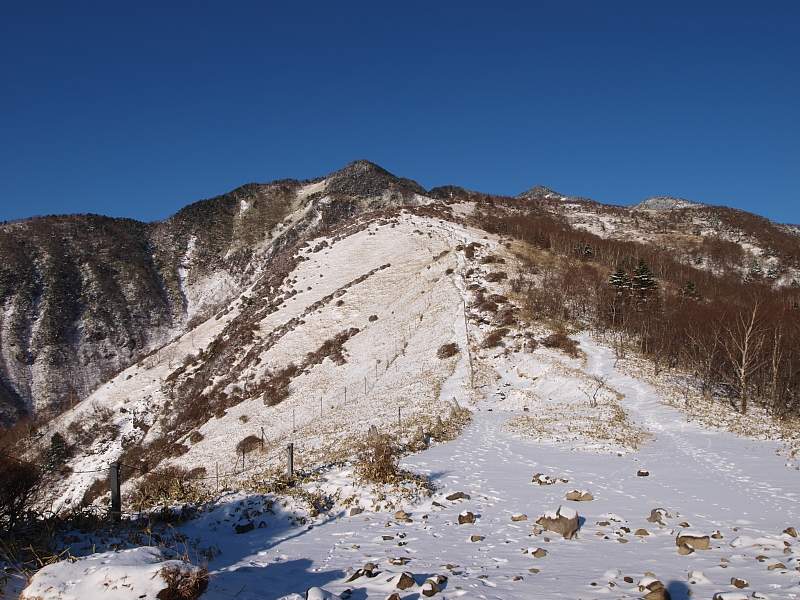 これから登る赤薙山。足跡は前日の人のものです。