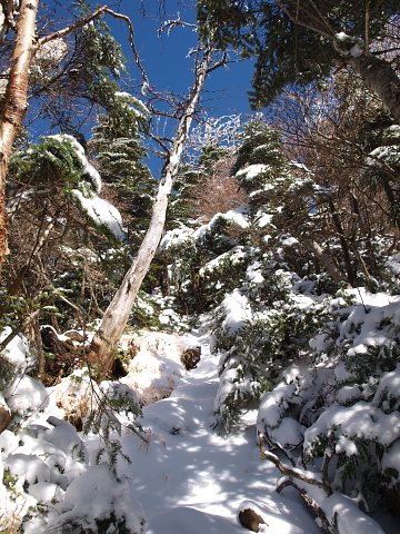 このコースは雪が付くと危険な箇所があるんですが、一里ヶ曽根独標で断念しても満足出来るので決めました。