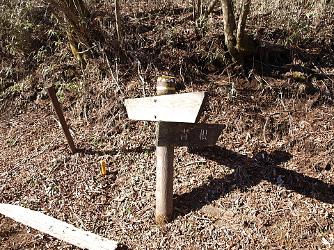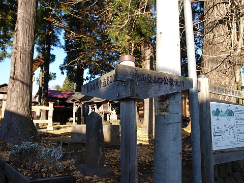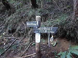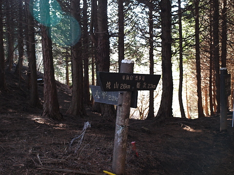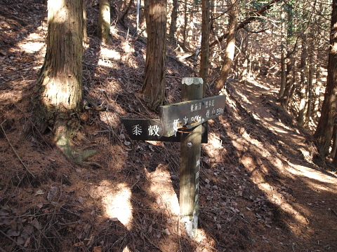 神社の角にある標識。東海自然歩道方面(バス進行方向)へ進みます。