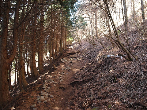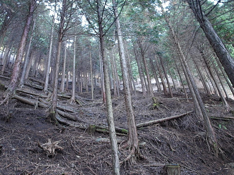 9:27 ヒノキの植林の間を急登します。ここの登りは応えました。