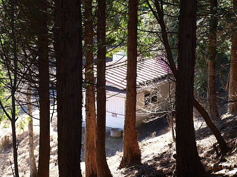 避難小屋は園地の端に建っています。園地にはテーブルもあり休憩にも適地です。