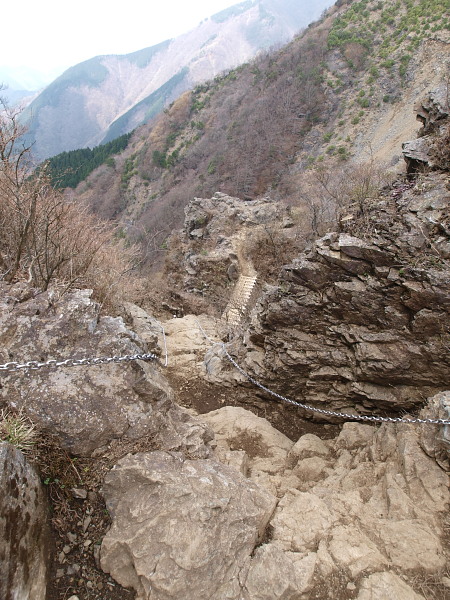 三ノ塔から烏尾山荘の間には鎖場があります。