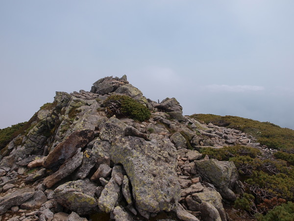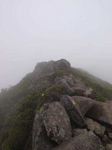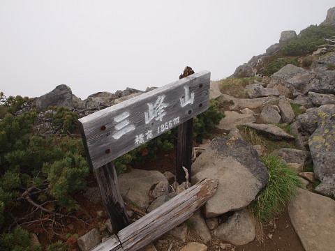 いつまでも山頂に居たいのですが、再びガスが上がってきたので三峰山へ出発。
