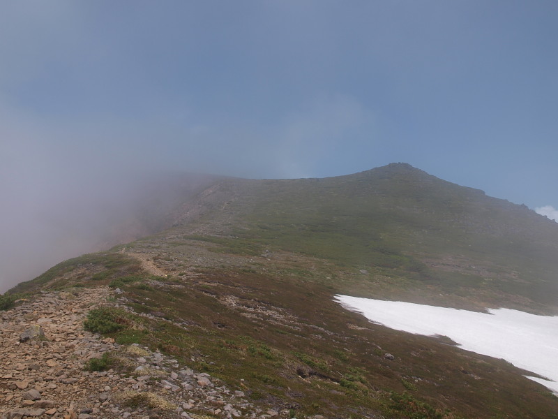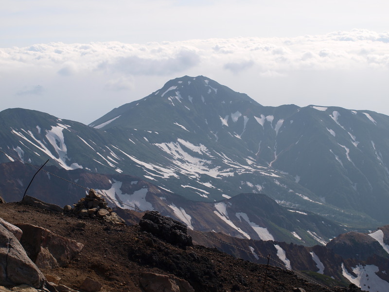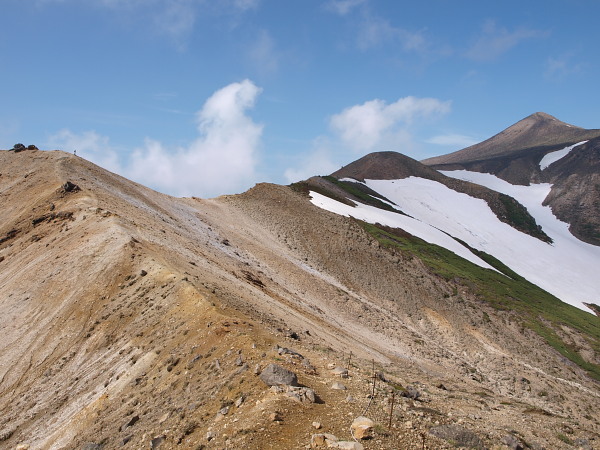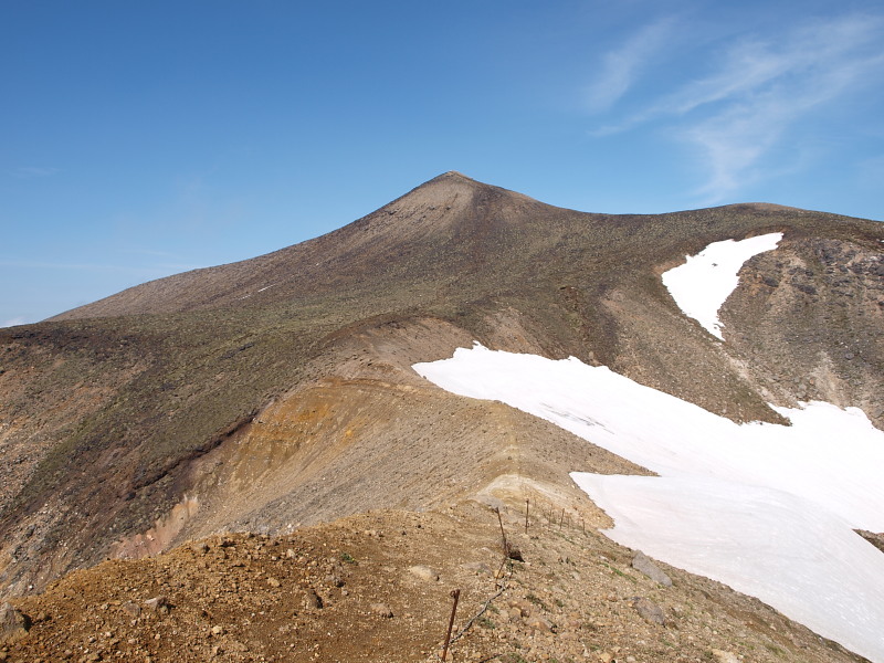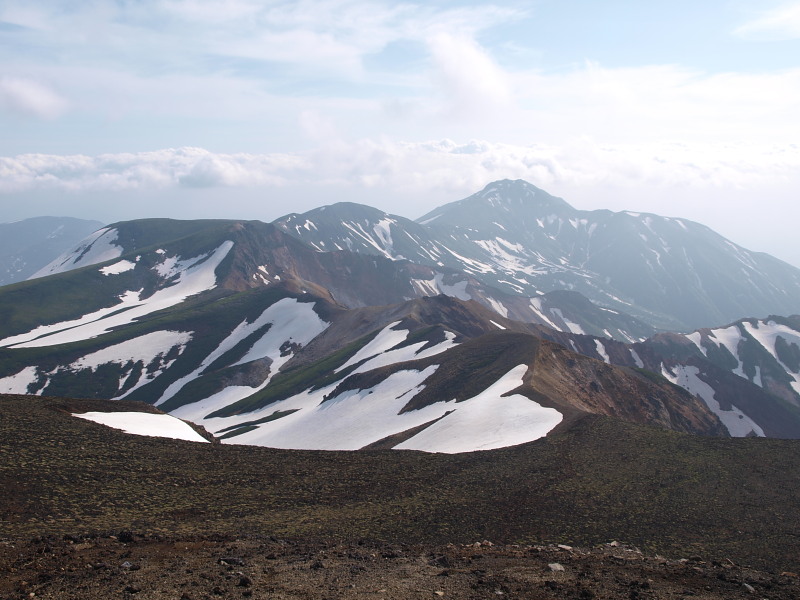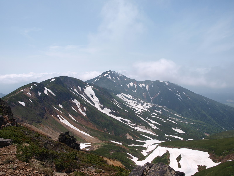 トムラウシ山のアップ。十勝連峰から道が続いています。