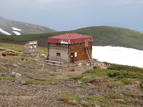 16:30頃、上ホロ避難小屋に戻ったら、2人組の方が小屋前にいました。