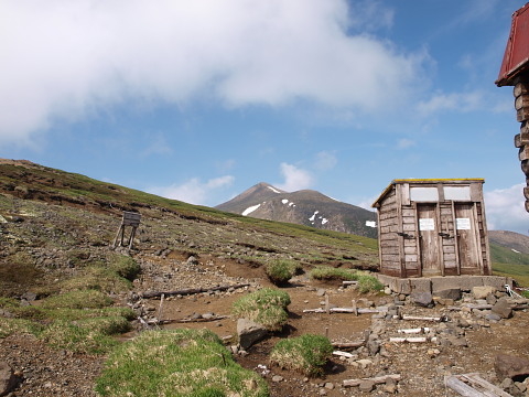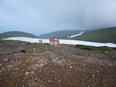 13:15 上ホロカメットク山から少しで上ホロ避難小屋が見えます。