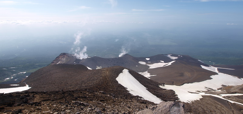 12:50 安政火口を望む。下の方には十勝岳温泉や登山道も確認できました。