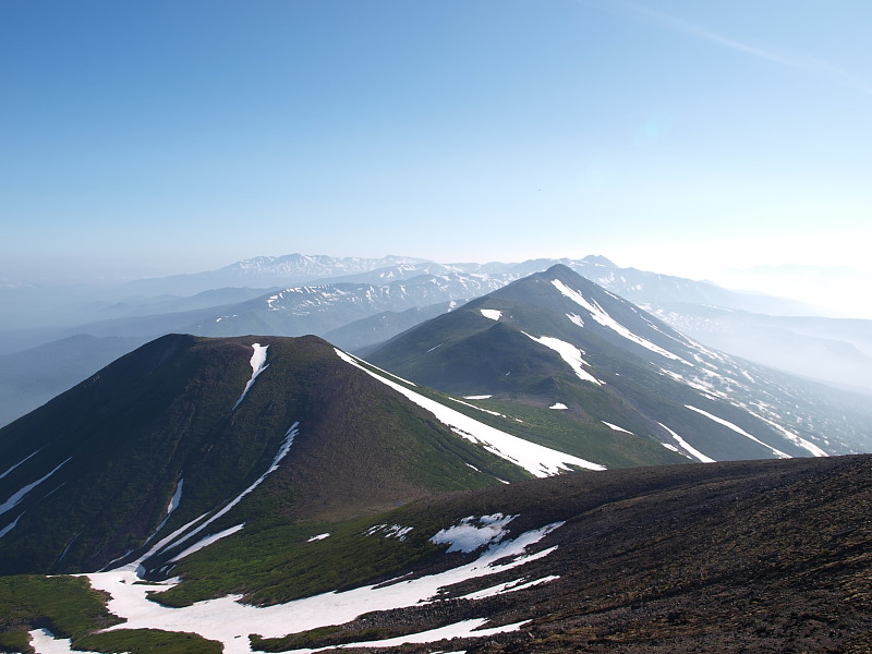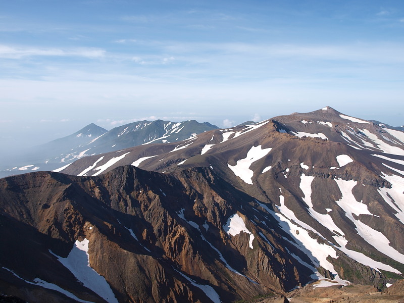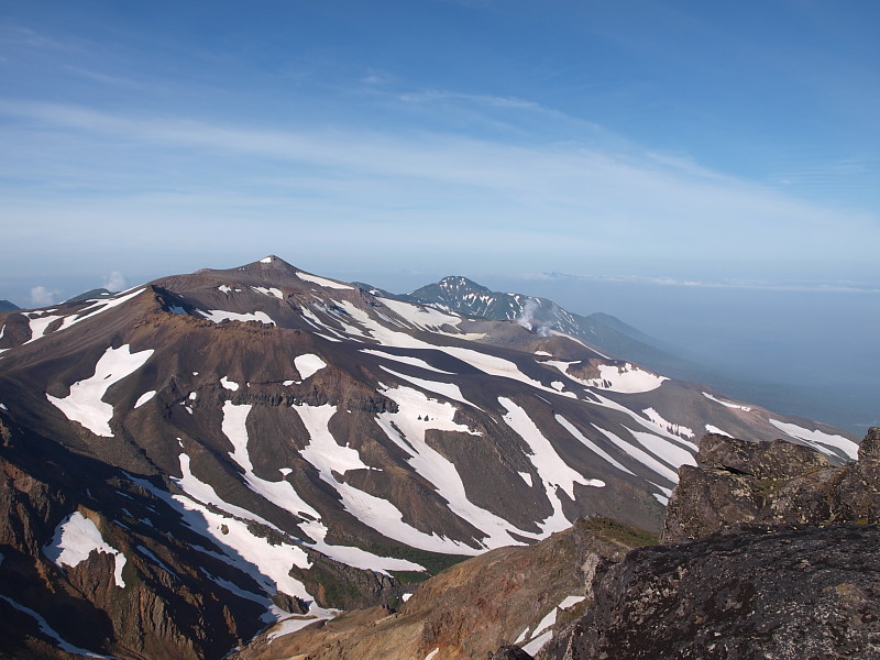 十勝岳と富良野岳。山って見る方向で印象が変わりますね。
