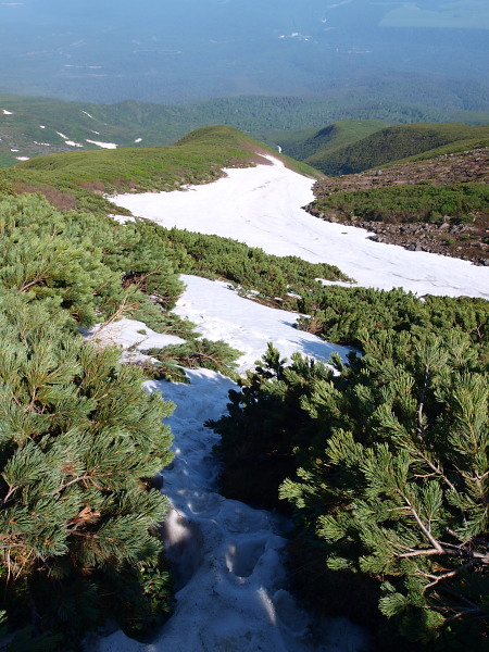 雪渓から見下ろして。