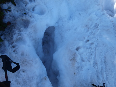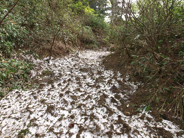 11:04 ここにきて残雪が・・・日陰で結構固かったです。