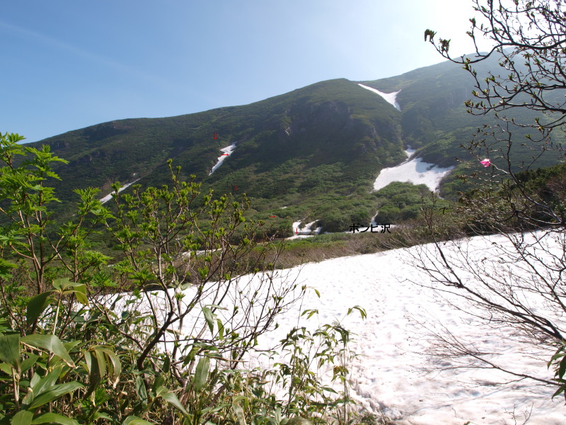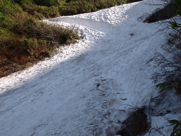 雪渓トラバースが何箇所かあります。