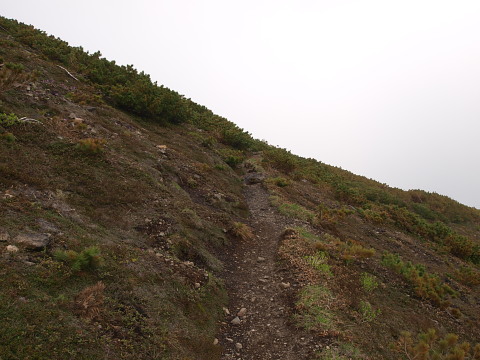 7:37 ハイマツ帯で踏み抜きました。