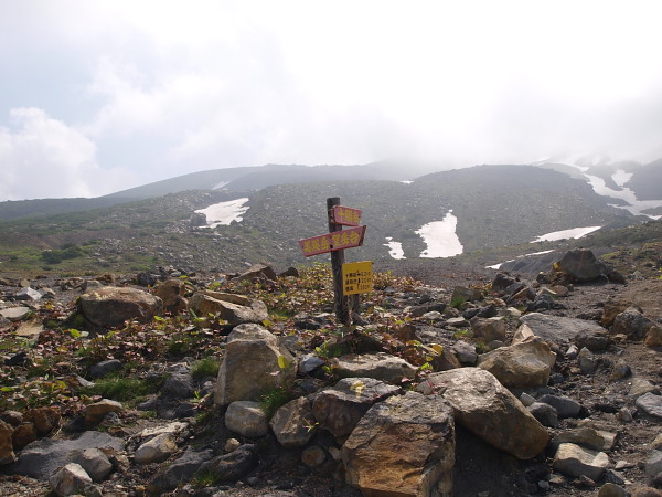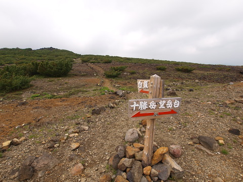9:17 雲ノ平分岐。十勝岳は雲の中です。