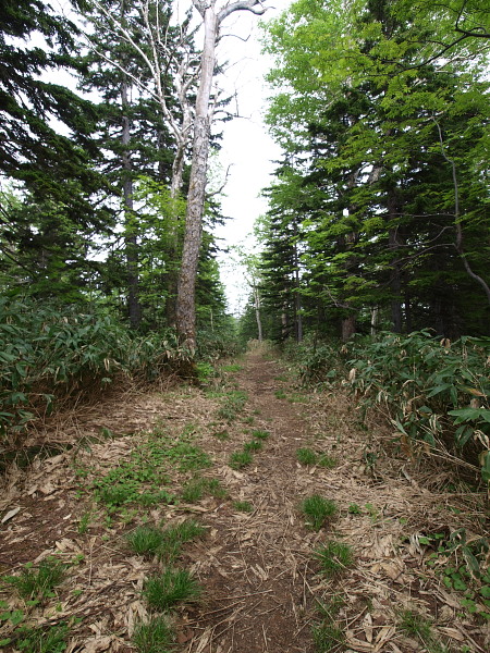 美瑛岳分岐からは樹林帯の中の急坂が続きます。