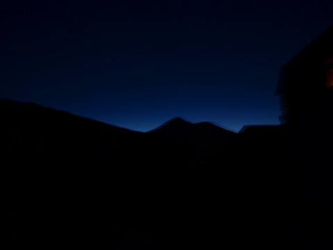 3:52 十勝岳のうしろが明るい!待っていれば十勝岳から朝日が昇るのかな?