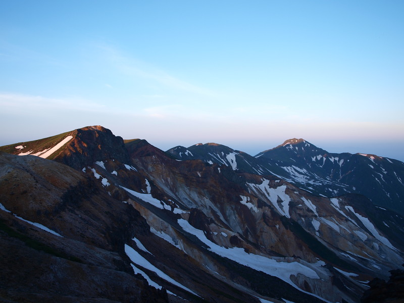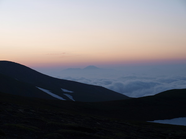 4:05 上ホロカメットク山から富良野岳にかけて日が差してきました。