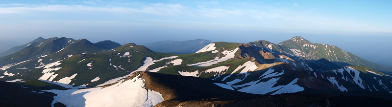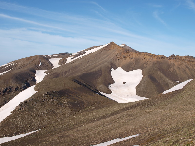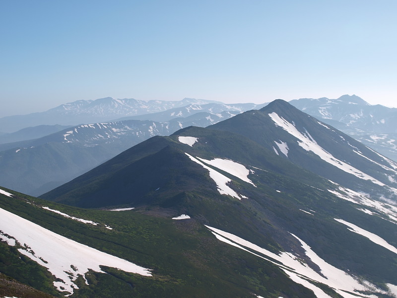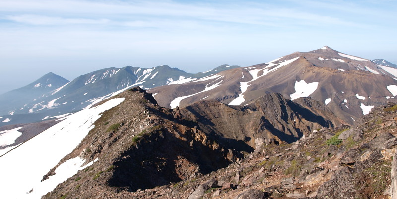 左端のきれいな円錐形の山は下ホロカメットク。一般登山道はありません。