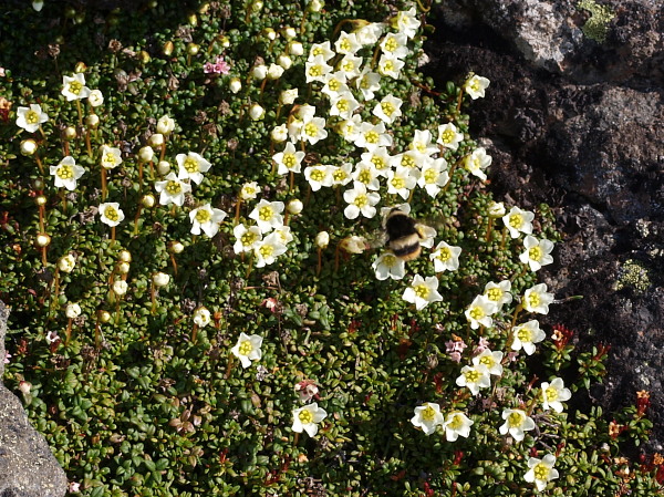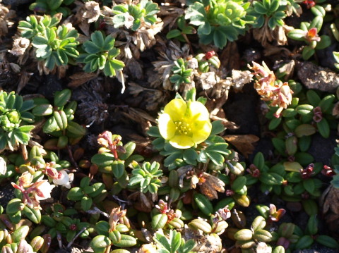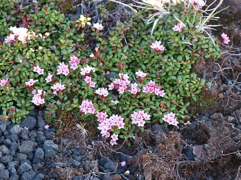 6:25 道は岩岩しています。イワウメの群落が見事!