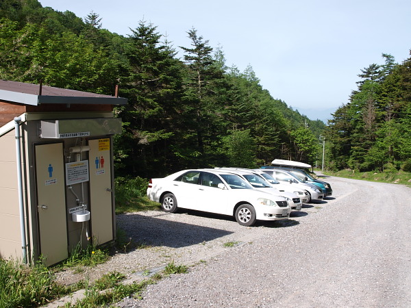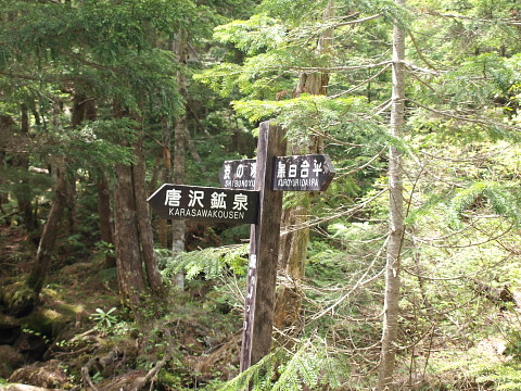 13:51 唐沢鉱泉。登山口は宿泊者用駐車場の奥にあります。